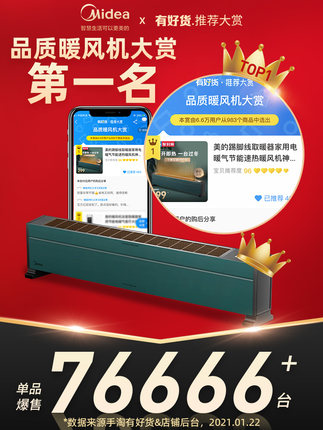 美的 家用踢脚线取暖器 居浴两用 三重防水 279 元活动价