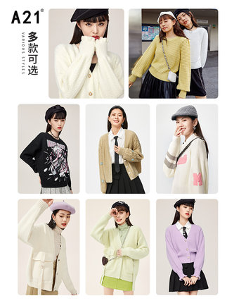 单穿、打底、开衫等等多达 26 款可选,所有款式最低 49 元、最高 99 元封顶,秋冬必备单品,可以来挑一挑啦!以纯旗下 A21 2021 秋新款女式慵懒风宽松长袖毛衣 / 针织开衫,多种款式可选,多为腈纶、聚酯纤维、锦纶和羊毛混纺面料,温软暖和,颜色清新,打底单穿总能找到你喜欢的款式。