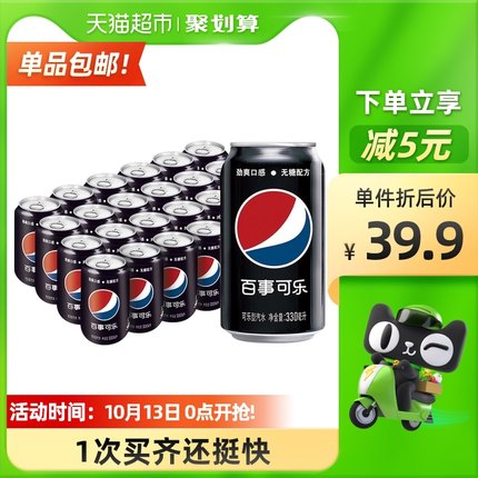 百事可乐 无糖碳酸汽水 330mL*24 罐 37.9 元包邮