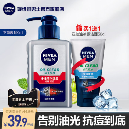 天猫妮维雅男士官方旗舰店 39.9 元,可领 20 元优惠券,实付 19.9 元到手,规格是 150ml,还送控油冰极洁面霜 50ml。