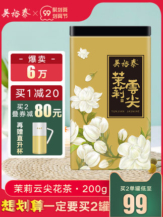 吴裕泰 云尖茉莉 特级茉莉花茶 200g 券后 99 元包邮
