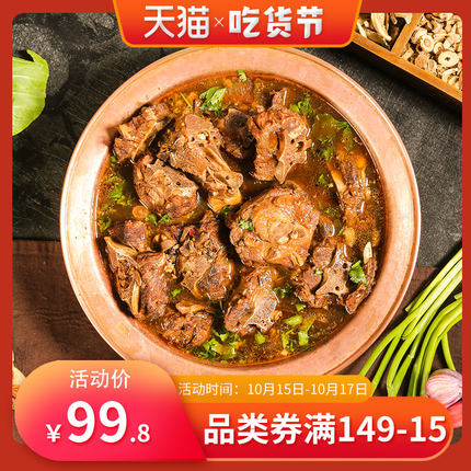 老诚一锅食品旗舰店, 15-17 日天猫 吃货日, ¥99.8 元 吃货价, -20 元优惠券, =79.8 元 到手价,20 年北京老店,全国 800 + 家门店。配有原汤的羊蝎子熟制礼盒,规格 1250g,固形物>500g。精选苏尼特 6 月羔羊,多道工艺制成,酱香微辣,肉质细嫩,味香浓郁。