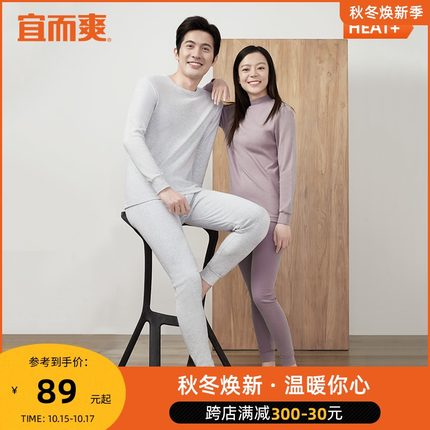 宜而爽内衣旗舰店, 10 月 15 日~17 日 天猫冬焕新, ¥89 元 焕新价, -40 元优惠券, =49 元 到手价,男女多款可选,全部同价。这款宜而爽保暖内衣采用 100% 新疆长绒棉面料,要比普通棉纤维更长更细,因此上身更加柔软细腻,吸湿透气性好,亲肤舒适。