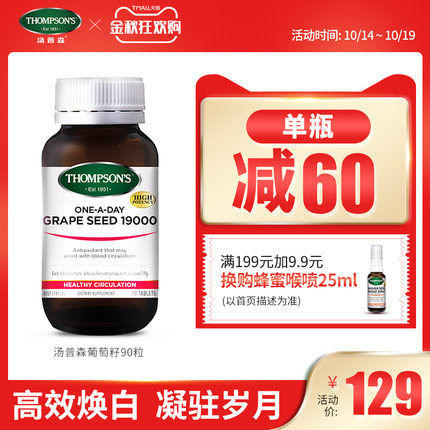 美容养颜 清仓神价~汤普森 葡萄籽精华片 90 粒 立减 + 券后 29 元包邮
