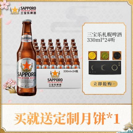 降 20 大洋新低价,还赠月饼 1 盒! 与麒麟、朝日啤酒齐名, 风味,让你体验舌尖上的北海道,12.22 到期,介意勿拍。目前 330mL*24 瓶装天猫商城三宝乐旗舰店售价¥209,领取¥120 优惠券,券后实付新低¥89 包邮,玻璃瓶装,风味最足。
