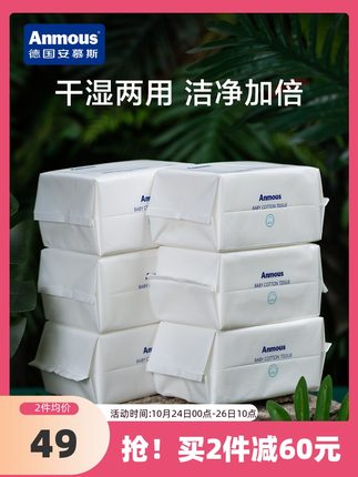 安慕斯 干湿两用婴儿纯棉柔巾 100 抽 * 6 包 可卸妆洁面 49 元包邮