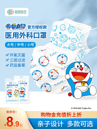 超亚 × 哆啦 A 梦联名 一次性医用外科口罩 (灭菌型)成人 / 儿童款 50 个 13.9 元包邮