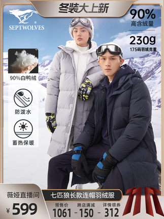 预售!Septwolves 七匹狼 1H1B70108888 情侣长款连帽羽绒服 到手 599 元包邮