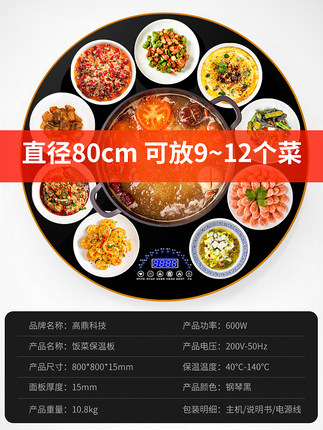 高鼎科技饭菜保温板 40-80cm 多功能热菜板 YD-303D 售价 78 元起,抵扣 20 元优惠券后 48 元起包邮,10 款可选。40-80cm 直径圆形暖菜板,预约开机。触控 + 遥控。360 度旋转。3 米电源线可放 6-8 个盘子,家庭实用版,ABS 绝缘材质,双开关安全装置,贴心童锁设计,安全放心。