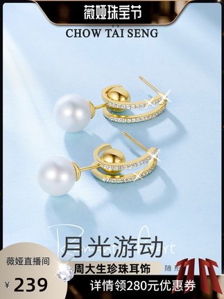 周大生 S925 珍珠纯银月光游动耳钉 到手价¥239