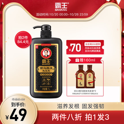 霸王官方旗舰店 59 元,可领 20 元优惠券,实付 39 元到手。官方出品,超值低价。主要原料有:何首乌,桐叶,黑芝麻,侧柏叶等成分。蕴含上等中草药精华配方,使秀发自然乌黑浓密,水润光泽有弹性!