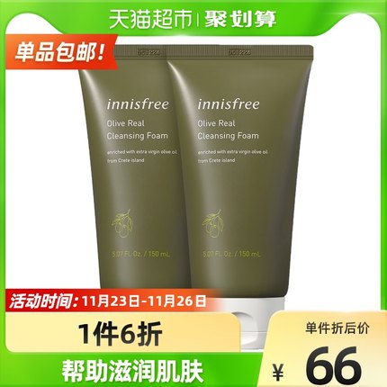 这款悦诗风吟 innisfree 橄榄油泡沫洁面乳,富含地中海黄金橄榄成分,帮助肌肤更加柔嫩水润,丰富稠密的泡沫,帮助干净清洁面部妆容残留物及污垢,洗完后肌肤水润不易紧绷。天猫超市 110 元,下单立减 44 元,可领 23 元优惠券,实付 43 元到手,共 150ml*2 支装,还送 70ml。