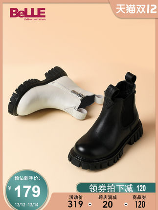 百丽 男女童 头层牛皮 加绒加厚 切尔西短靴 169 元双 12 价