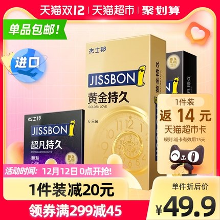12 月 12~14 日 天猫双 12, ¥69.9 元 双 12 价, -20 元 下单立减, =49.9 元 到手,返现 14 元猫超卡。黄金持久 延时防早泄 超薄情趣礼盒。包含:黄金持久 6 只、超凡持久颗粒 2 只、超凡持久 1 只 * 2、沁润零感 4 只。