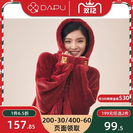A 类标准,DAPU 大朴 中国风绣花舒棉绒连帽家居服套装 109.85 元包邮