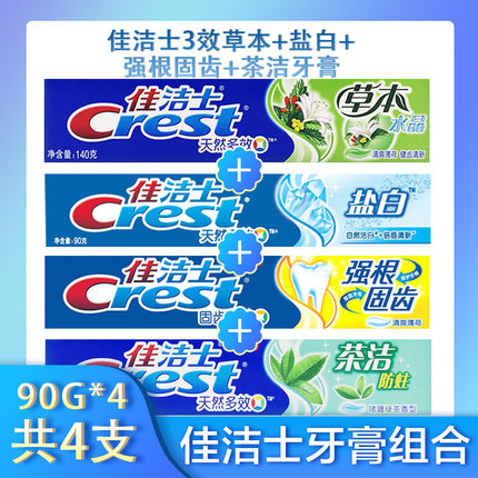 佳洁士草本水晶牙膏 140g*1 支 盐白牙膏 140g*1 支 强根固齿牙膏 140g*1 支 茶洁牙膏 140g*1 支,带给全家更好的护理。
