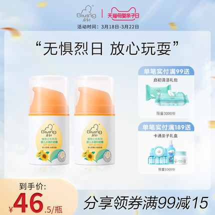 启初 婴儿水感防晒霜宝宝防晒清爽保湿 SPF40* 2 瓶 49 元包邮,劵后