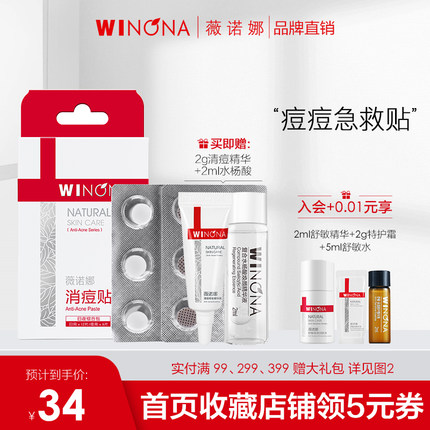 薇诺娜 日用 / 夜用隐形祛痘贴 18 片 赠清痘精华 2g + 水杨酸 2ml 29 元包邮