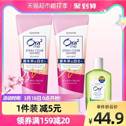 Ora2 皓乐齿 果味亮白净色牙膏 多款 140g*2 件 + 漱口水 100ml 34.9 元包邮(合 17.45 元 / 件)