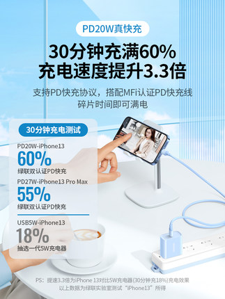 实付 26.9 元包邮,另外 PD18W 折叠款、PD20W 折叠款略贵,还有套装可选。通过苹果 MFI 认证,采用 Type-C 接口,20W 大功率,,主体采用阻燃 PC 材料,具备过压、过流、过热等保护机制,支持 PD、QC 快充协议,可为 iPhone、iPad、Switch 快速充电,及部分笔记本供电,尺寸为 55.7×47.5×28mm