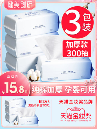 健美创研 干湿两用一次性加厚棉柔洗脸巾 50 抽 * 3 包 12.8 元包邮