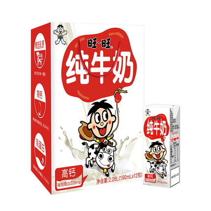 这款旺旺 常温高钙纯牛奶,精选优质奶源 生牛乳制作,每 100ml 乳蛋白含量≥3.6g, 钙含量高达每盒 228mg,营养更高,旺旺食品旗舰店 69.9 元,可领 40 元优惠券,实付 29.9 元到手,规格为 190ml*12 盒。