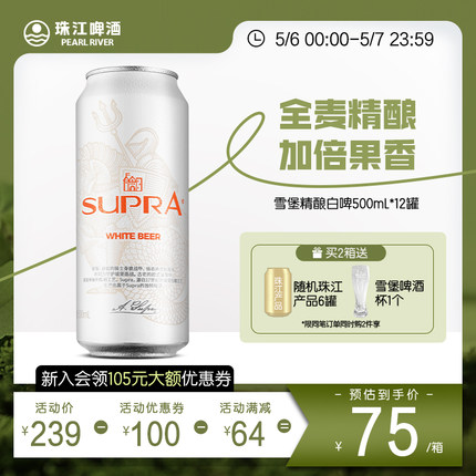 珠江啤酒 雪堡精酿 11°P 比利时风味白啤酒 500mL*12 罐 赠珠江 330mL*12 罐新低 59 元包邮 8
