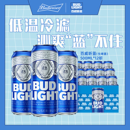 百威 Bud Light 昕蓝 生啤酒 500ml*12 听 69 元包邮 9