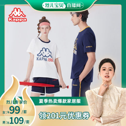 2023 春夏新款短袖家居服套装,纯棉透气,简约经典,时尚可外穿。目前天猫商城 kappa 内衣旗舰店售价¥300,可使用¥201 优惠券,实付¥99 包邮,男、女多色可选,纯色(简约版)、字母(时尚版)2 种款式,男款券后¥109。M~XXXL 码全。