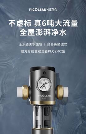 碧克仑全屋自来水前置过滤器净水机,4 微米精过滤,316 不锈钢滤芯,终身免换芯,实时水压检测,不插电,360° 万向安装大通量,反冲洗,正品保证