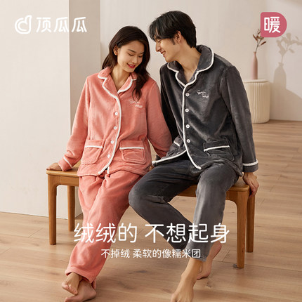 顶瓜瓜 情侣法兰绒加厚翻领长袖家居服套装 多色新低 79.9 元包邮