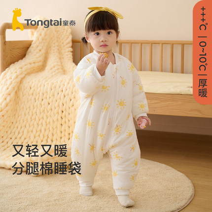 童泰 秋冬款夹棉婴儿睡袋,分腿设计,版型更符合宝宝运动轨迹,A 类纯棉,轻盈保暖。双向拉链方便更换尿片,下摆大空间更舒适。目前天猫商城特价 79.9 元起,叠加 20 元优惠券,实付 59.9 元包邮。