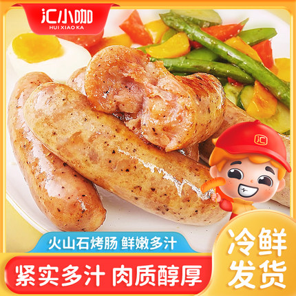 【80% 含肉量】汇小咖火山石烤肠 500g*2,原味 + 黑胡椒味一次吃到嗨,真材实料弹脆多汁,肉香够劲肉嫩,弹脆鲜香,汁水丰腴。焦香脆弹入口 Q 弹有嚼劲,甄选胶原蛋白优质肠衣,锁住鲜嫩汁,水滑润柔软。满口鲜肉,咬一口满满的肉。【赠运费险】