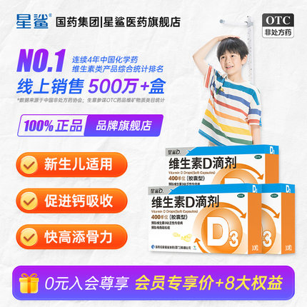 星鲨 婴幼儿 / 儿童维生素 D 滴剂软胶囊 400IU/30 粒 * 3 件 54.45 元包邮