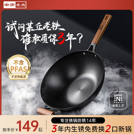 铁锅中扛把子中康来了! 承诺 3 年内生锈免费换 2 口新锅!深氮化防锈无涂层不粘铁锅!把心放肚子里,质量过硬!性价比高! 不挑炉灶均通用!升级版运费险!