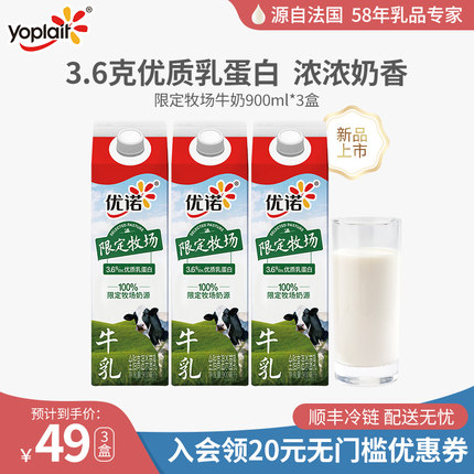 优诺 限定牧场系列 牛奶 900mL*5 瓶 60 元顺丰冷链包邮