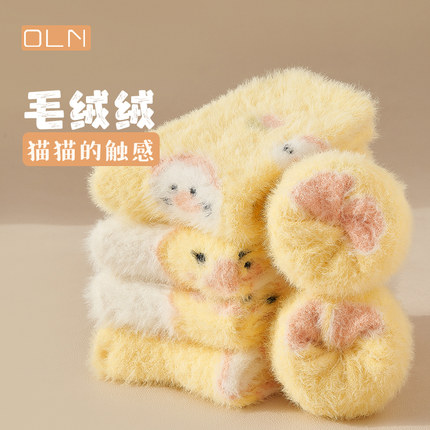 驼绒袜子女秋冬季加绒加厚中筒袜 4 双 券后 9.8 元包邮