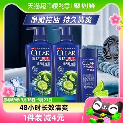 【赠送补充装 200g,到手 59.9 元,88 会员再打 95 折】清扬男士去屑青柠薄荷洗发水 500g×2+100g,专为男士设计,双重去屑成分,提升头皮自身净屑力,清爽控油型:含有薄荷醇、茶树和人参精华,帮助抑制头痒、油腻等问题。